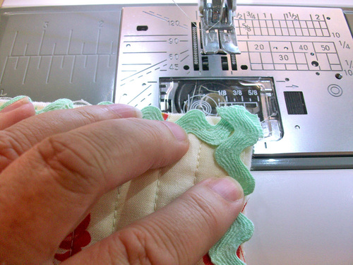 - Trim the edges of the rick rack flush with the fabric.