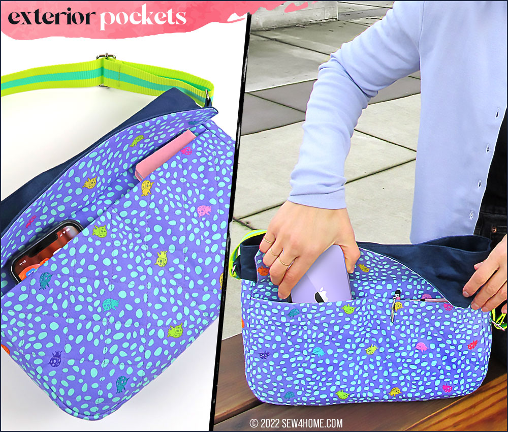 We send a BIG shout-out of thanks to Janome for sponsoring this beautiful bag. Their support helps underwrite the design and production costs, including being able to provide you with a free pattern download. A pattern is especially important when you have a design with a curving side wall and a flap with angled corners. You can be confident all the pieces will fit together perfectly.