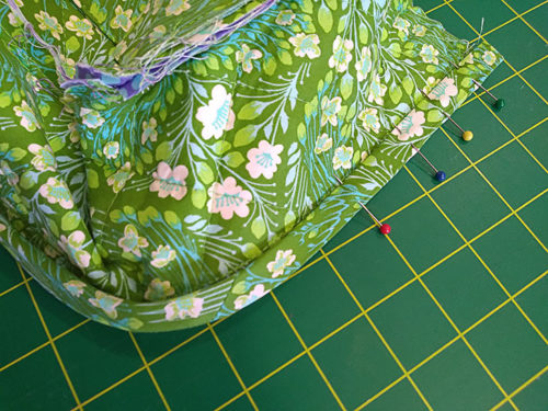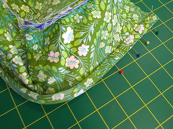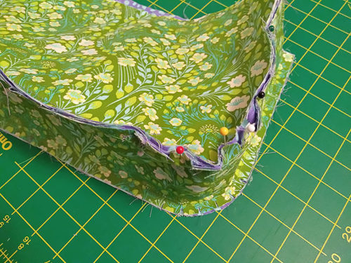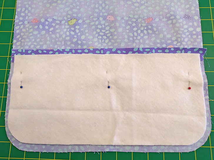 - You can clip into the side wall to give it some additional “stretch” for a smoother curve around the bottom corners. Pin in place.