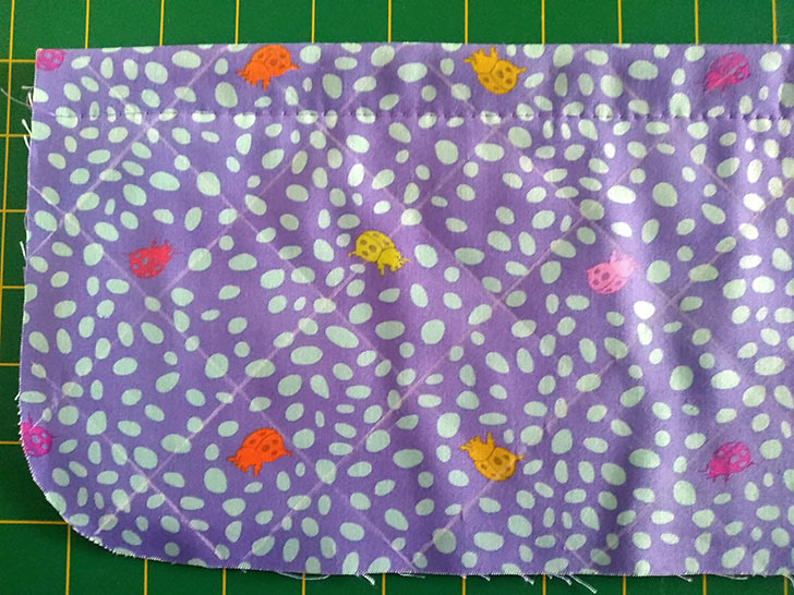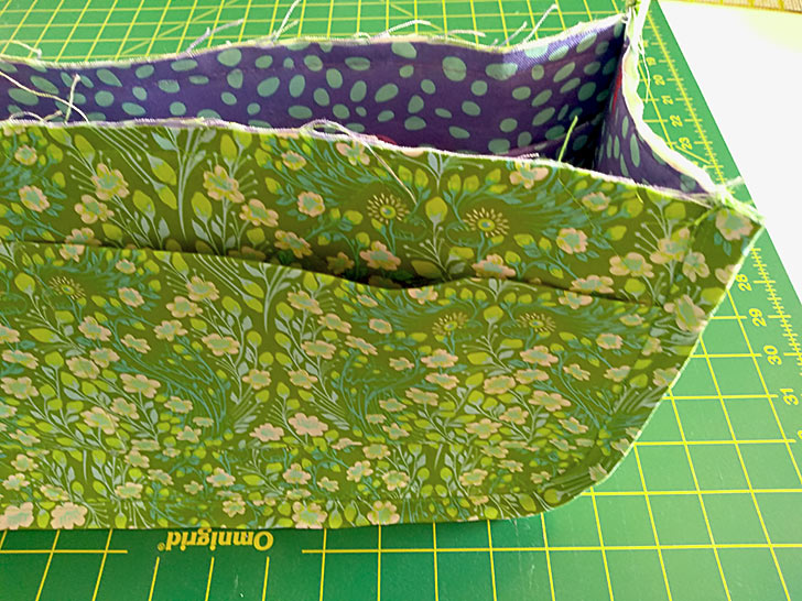 - Trim away any excess side wall fabric from the right edge so the side wall is flush with both the front and back panels.