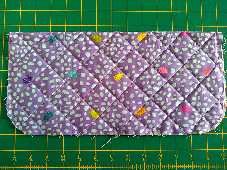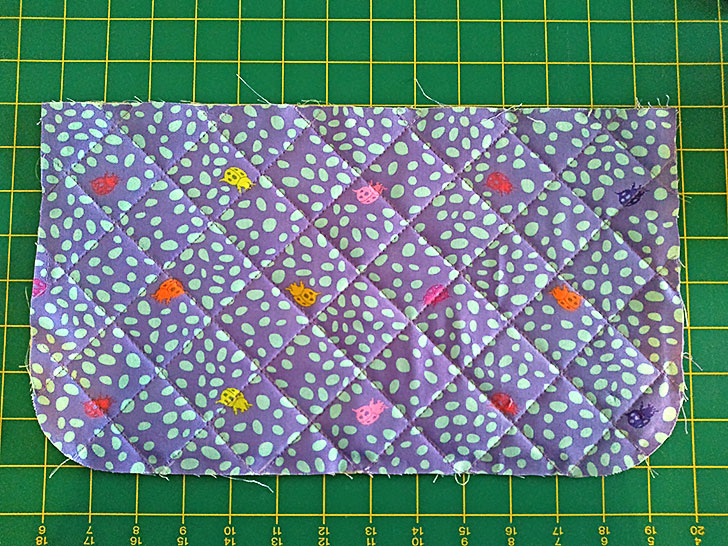 - Find the quilted back panel. Place it lining side up and flat on your work surface.