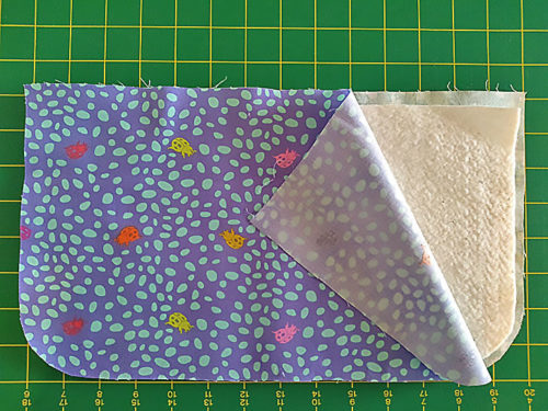 - Place the batting panel on top of the lining panel. The batting should sit directly on top of the interfacing.