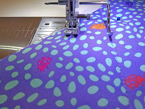 NOTE: This is just a reminder that throughout the project, you should be checking and re-threading as necessary to insure the thread is a good match to the fabric in both the top and the bobbin. In this case: thread to match the lining in the top and thread to match the exterior in the bobbin.