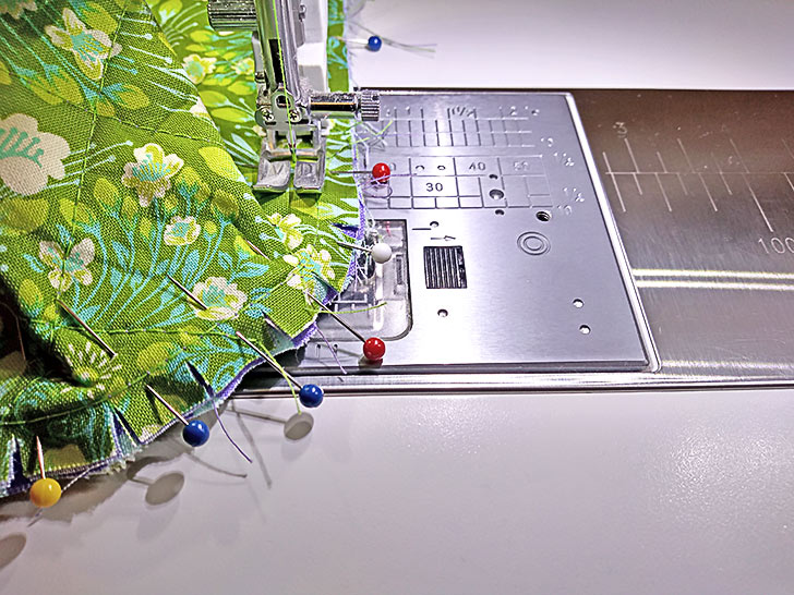 - Pin along both sides and across the bottom. The upper edge remains unpinned.