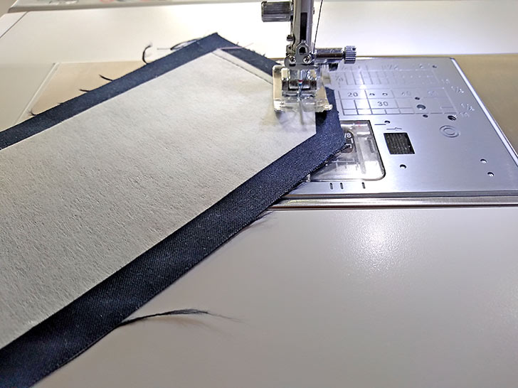 - Re-set for the slightly lengthened stitch. Edgestitch across the bottom edge of the pocket only.