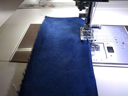 - Find the 33” x 5” faux suede strip and the 32” x 2” interfacing strip.
