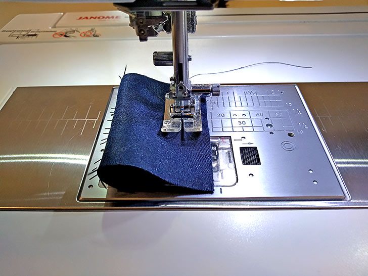 - Re-set for a standard lengthened topstitch (we again used 3.0 mm) and stitch along the drawn vertical line.