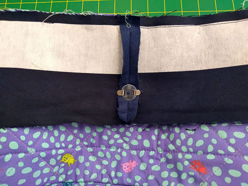 - The other half of the snap goes on the front of the trim loop directly opposite the first half; 1” from the edge of the interfacing.