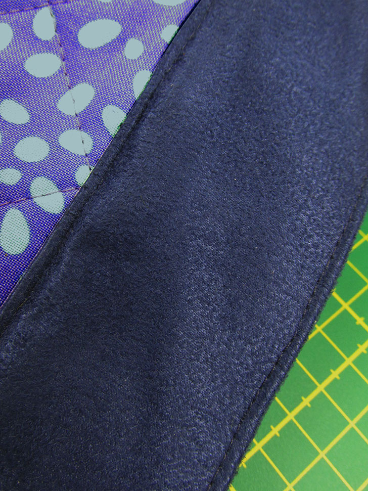 - It’s a great finish that blends into the bag. With one side complete, repeat to bind the remaining seam allowance.