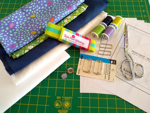 - 1 yard of 1½” wide coordinating webbing; we used Tula Pink webbing by Renaissance Ribbons in Classic Lime/Bright Aqua