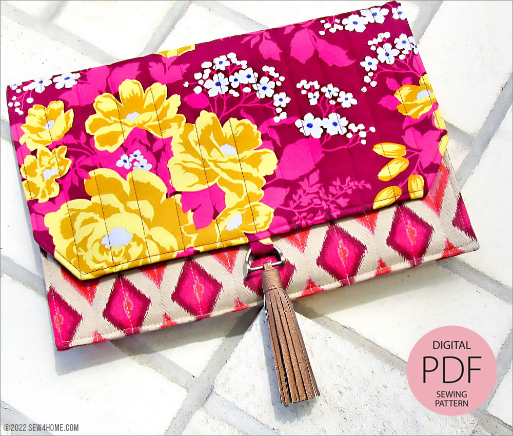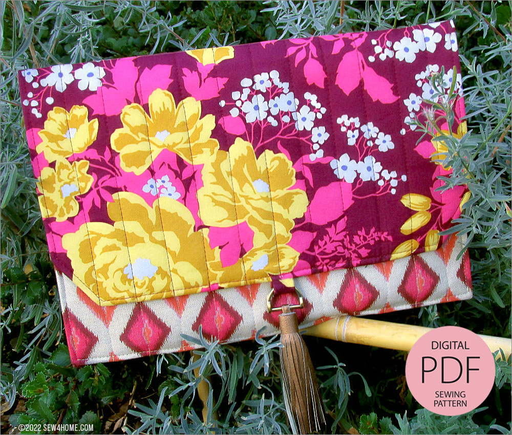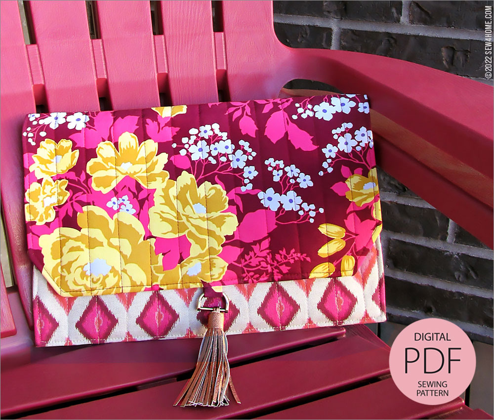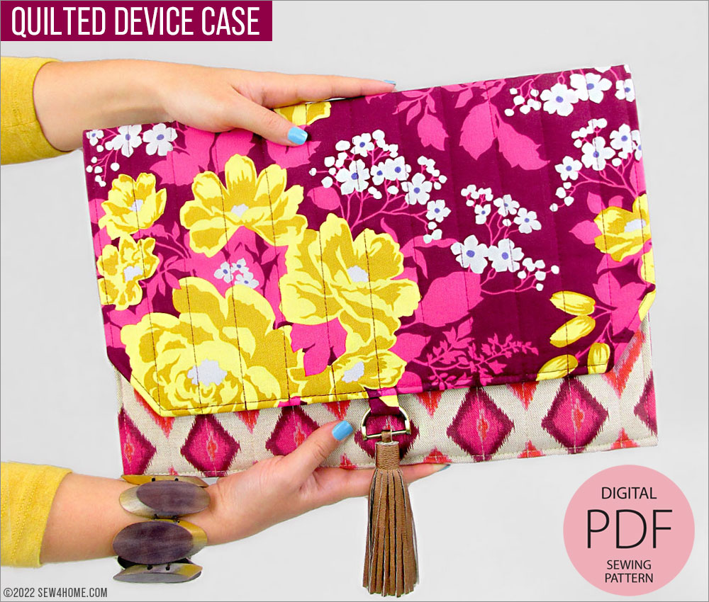 As an ePattern, our Quilted Slimline Device Case includes instructions and photos to take you through each step of the construction, including how to precisely layer and edgestitch as well as how to create the decorative faux leather tassel that hangs from a D-ring at the center of the fold-over flap. This embellishment is optional, but it is a striking design feature that really makes the case stand out… and it’s easy to do!