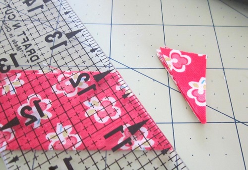 TWO 12½” wide x 9½” high rectangles for the front and back panels - From the fabrics for the patchwork accent, cut ONE 2½” x 2½” square from EACH of SIX fabrics; we used jelly roll strips, which are 2½” wide to start with, so we simply fussy cut a square from each strip.