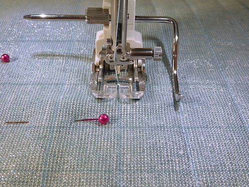 - Pin in place through all the layers along several of the vertical lines.