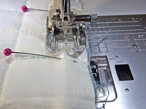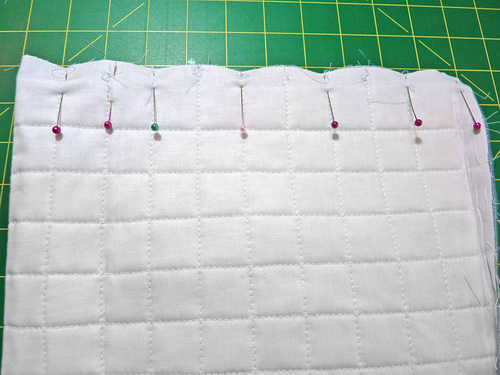 - It is extremely important that your quilting aligns perfectly along each side. Pin in place along each side.