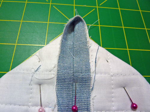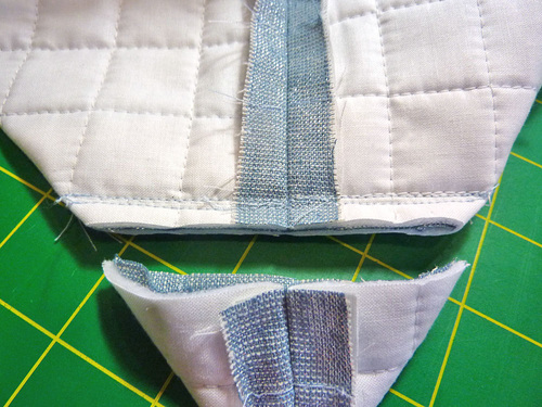 - Trim away the peak to ¼” from the line of stitching.