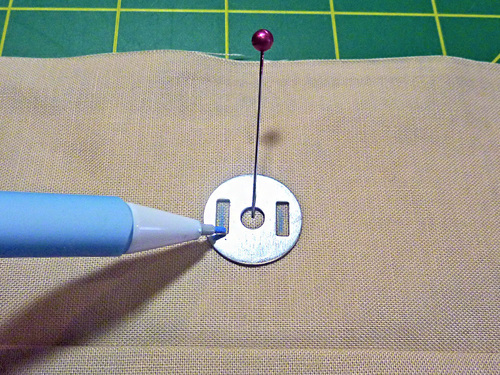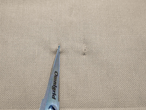 - Cut small slits through the fabric and fleece at the marked lines.