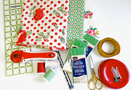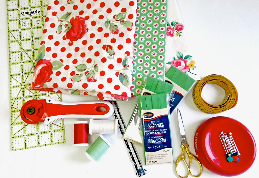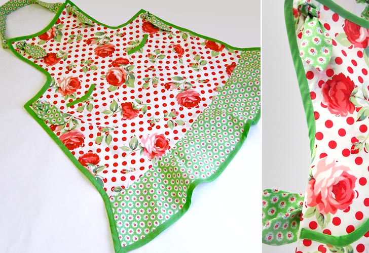 This apron shot to the top of our Most Popular list the very day it posted, and although there have been many contenders since it was originally designed and unveiled back in April of 2010, it remains one of our Top Five Projects Ever. Of course, it HAD to be one of our R&R options: “Re-imagine & Renovate.” If you’ve been following us over the last week, you know our New Year’s resolution is to show you how one project can turn out an unlimited number of ways, depending on the choices you make with fabrics, trims and notions. Kick off your own R&R with a shopping trip for some fresh fabric, then use it to put a new spin on a favorite pattern. Our original apron had a very vintage feel thanks to its Simply Sweet fabric by Barbara Jones for Henry Glass & Company. We kept the sweet and added a little spice with a trio of Lecien Fabrics covered in bold roses, polka dots and tiny buds. It would make a dashing Valentine’s Day apron!