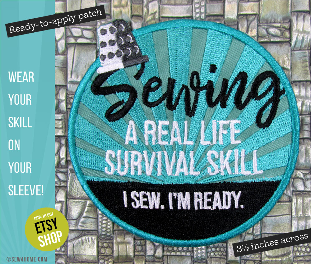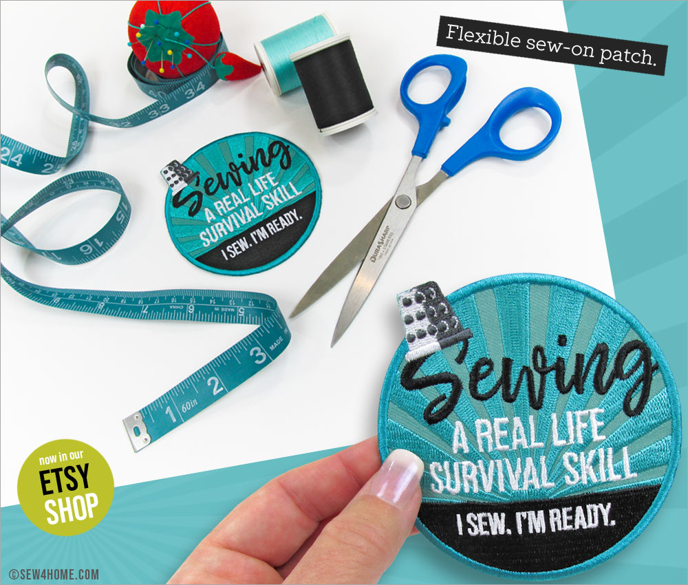 You Asked 4 It! Our super popular Sewing is a Real Life Survival Skill emblem is currently available on the site as a free PDF template for use as an iron-transfer or hand embroidery template. In addition, you can find it in our Etsy Shop as a machine embroidery design download package for just $2.99. All good, right? But there were still many visitors who wanted it as a finished patch.
