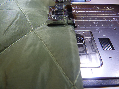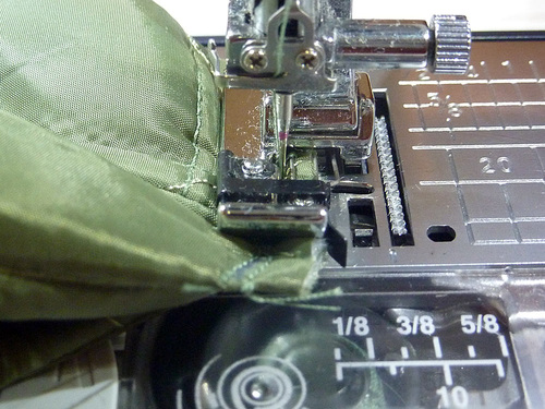 NOTE: Why the extra steps? Stitching without the clamp in place allows you to run your seam much closer all the way down. Otherwise, you’d never be able to get close enough without bumping into the clamp with presser foot.