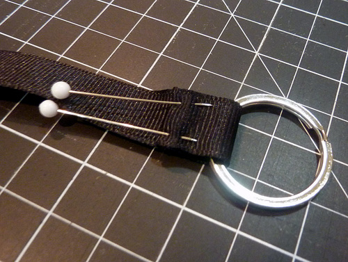 - Find the length of the grosgrain ribbon and the ring from the key fob hardware set.