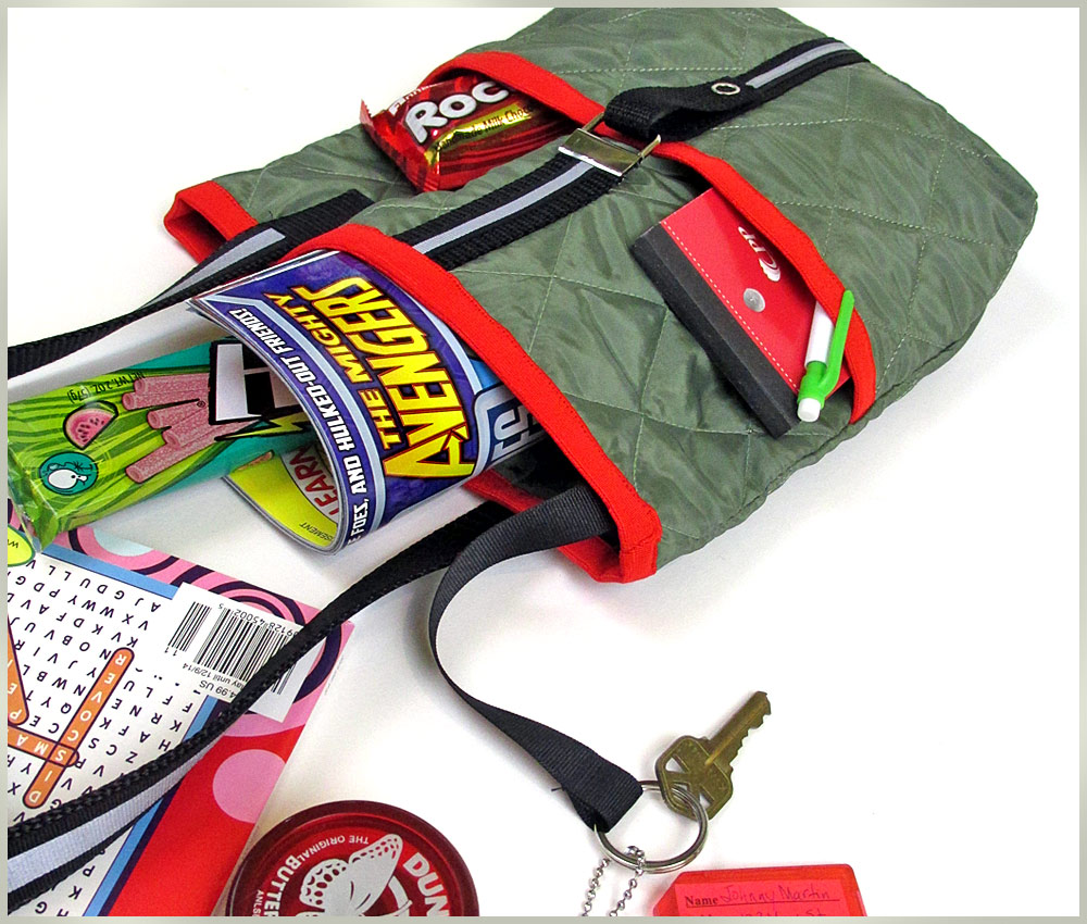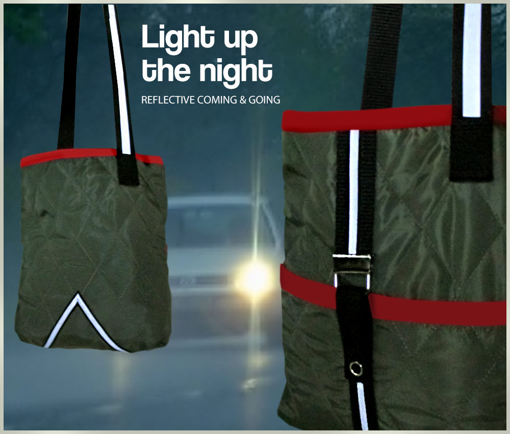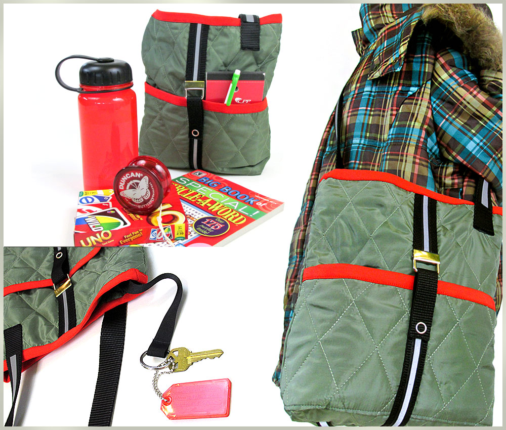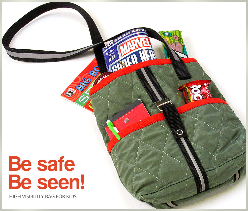 With the time change from Daylight to Standard Time hits across most of North America, we get an extra hour of sleep, but in exchange for this bonus snooze time, we are now faced with several months of ever-encroaching darkness. It’s the perfect time for a bag with built-in reflective capabilities. This high-visibility mini-tote is great for kids who can be headed to school and back home in the dark. We used four different nifty notions from Dritz.