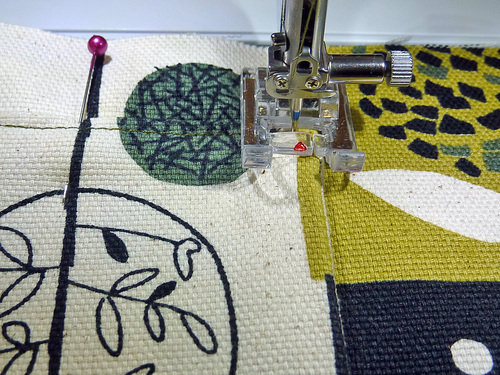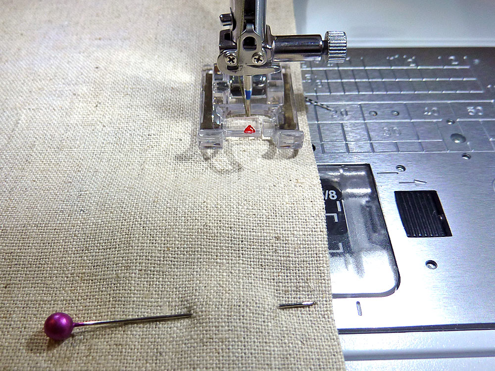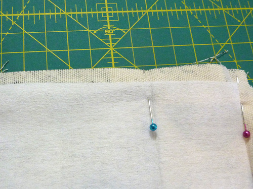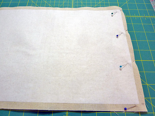 - Pin the two long sides (the front and back of the bag) in the same manner.