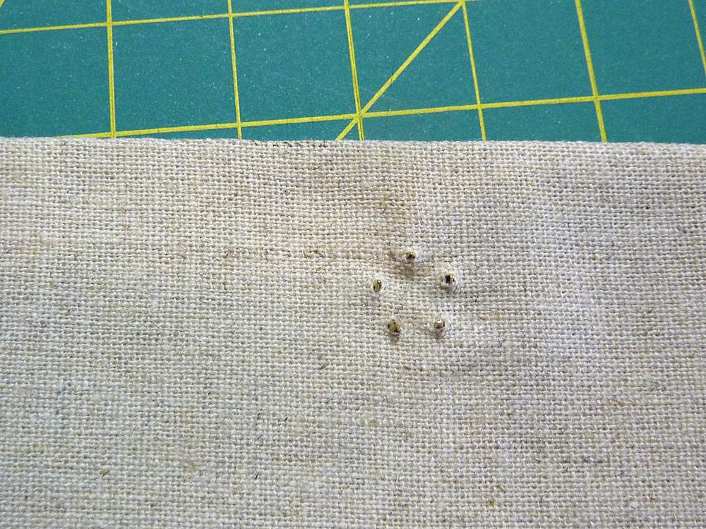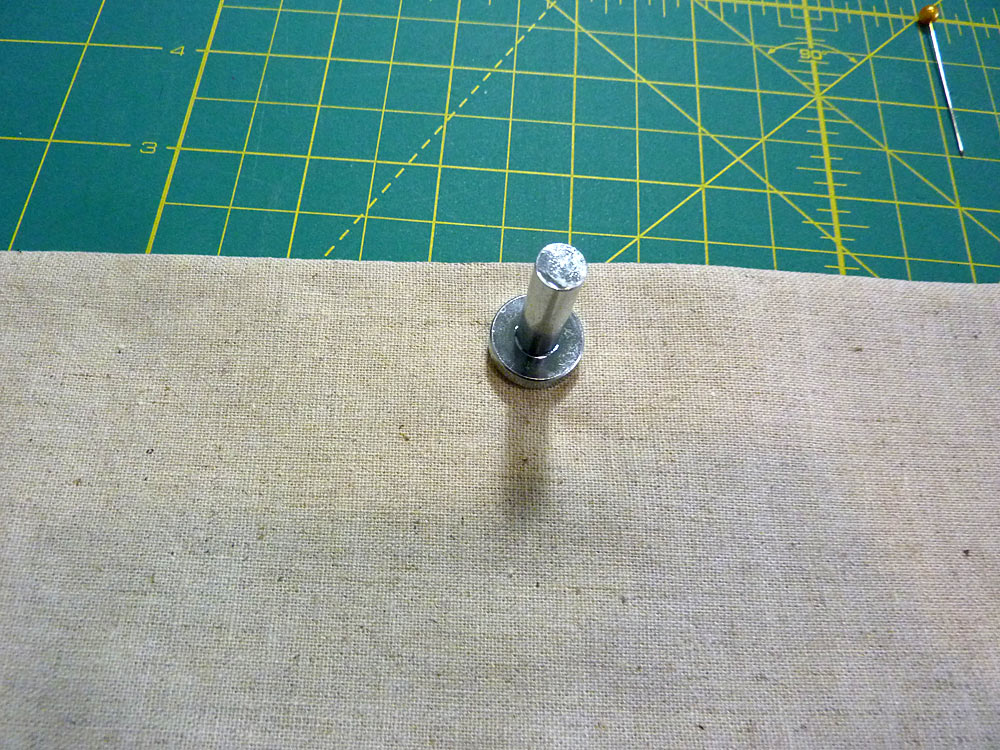 - Following manufacturer’s instructions or our own detailed How to Insert a Magnetic Snap tutorial, insert one half of the magnetic snap at each center point. The snap is inserted just through the facing.