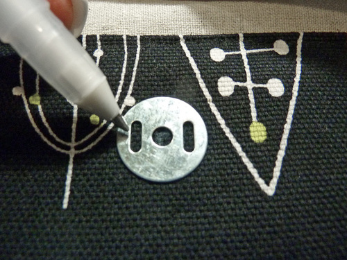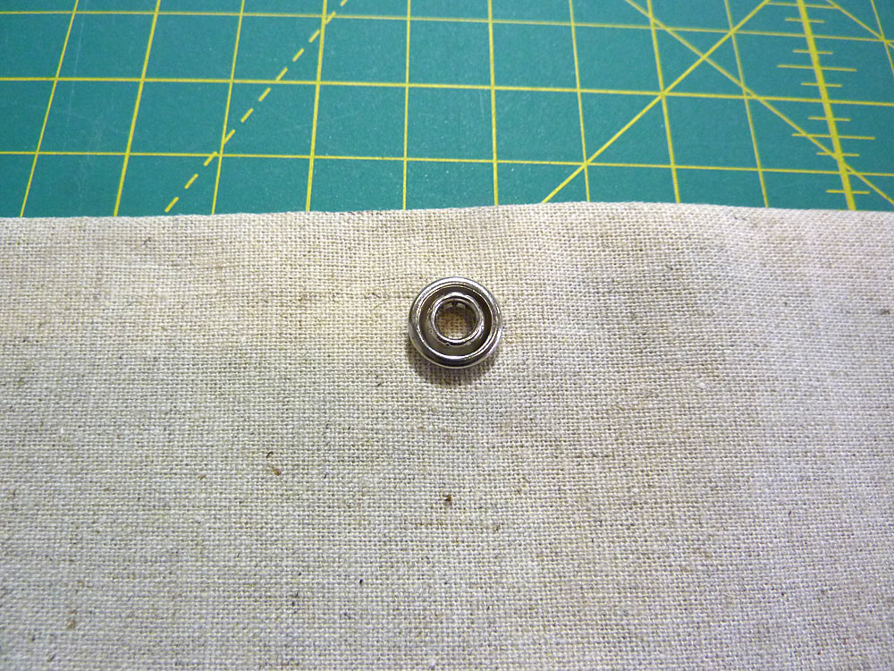 - Using the flap’s snap as a guide, mark the center point for the base snap. Insert the base ring from back to front so the prongs protrude through the exterior fabric.