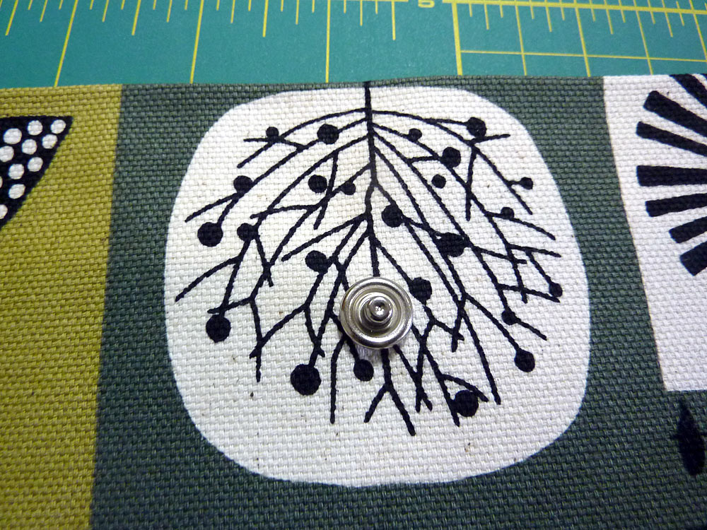 - With the top half in place, close the flap and mark the position for the bottom half of the snap. Insert the bottom half of the snap in the same manner as above.
