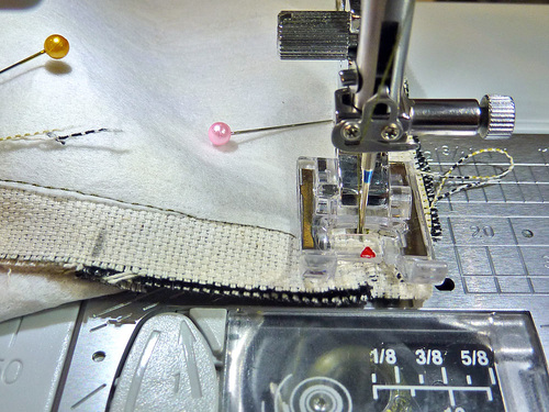 - Zig zag across the raw ends of the tab through both layers.