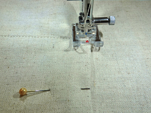 - Stitch along the drawn vertical guide line.