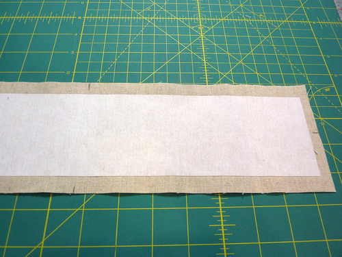- Find the exterior base panel and one of the 3” x 15” rectangles of mid-weight interfacing.