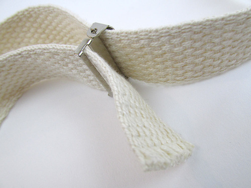 - Bring the raw ends of the webbing together so they are flush and pin or clip. We used our Clover Wonder Clips.
