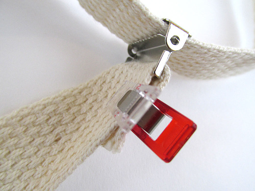 And, that adjustable strap has a very unique “adjuster.” We used one of the Dritz® Suspender Slides, which worked great to grip the soft black webbing.