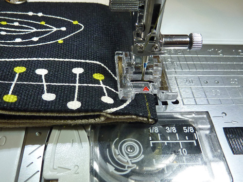 - Edgestitch along both sides and across the bottom of the pocket. This seals the opening used for turning right side out.