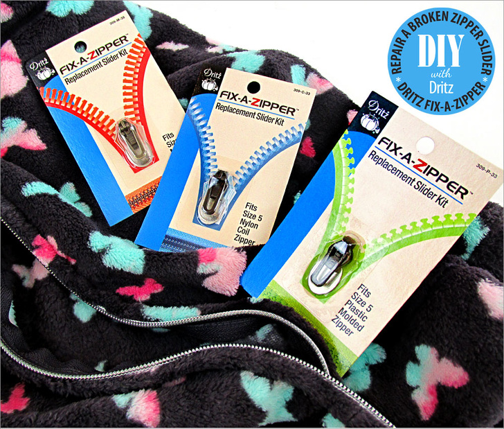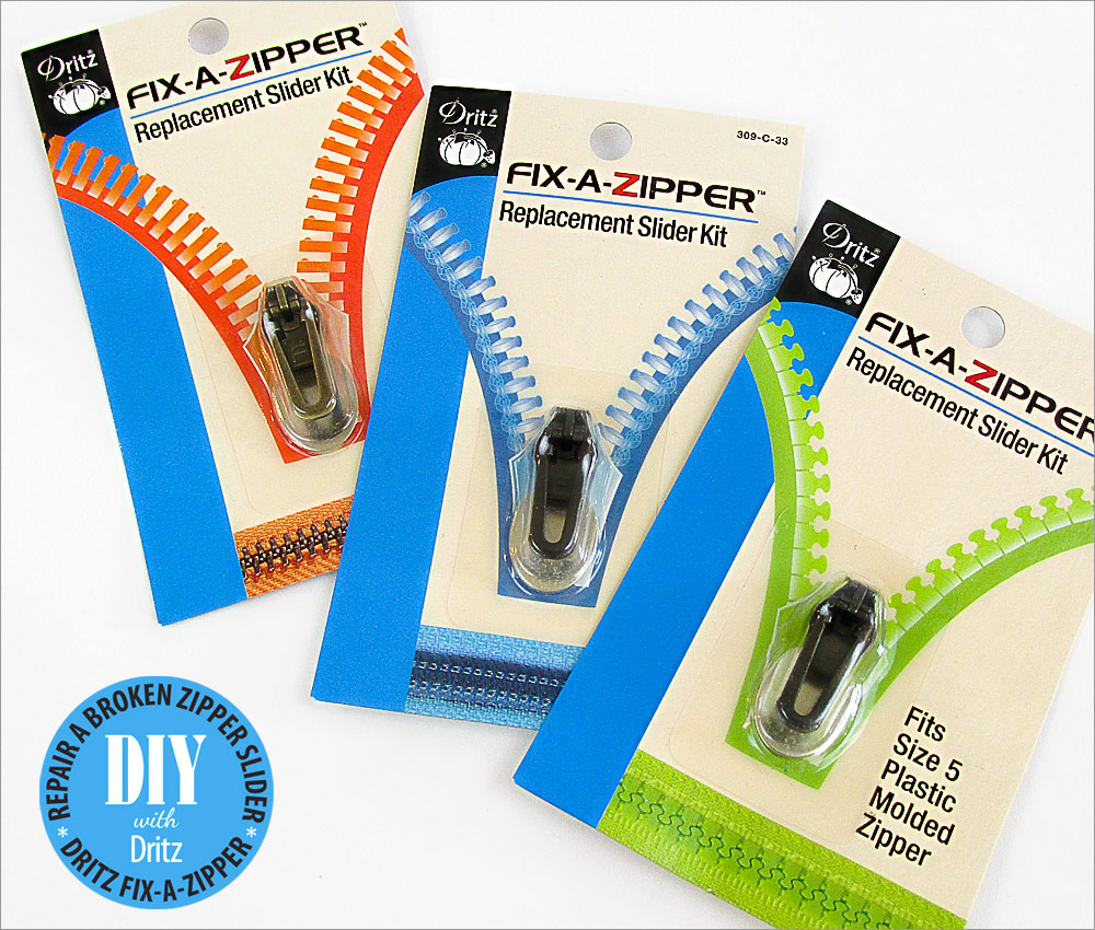 Broken zipper = broken heart! When a zipper doesn’t zip, not only does its name no longer have any meaning… it is a major frustration because it means something either won’t close or won’t open. The most common element to fail is the zipper slider; the good news is, this can also be the easier part to replace. The Fix-A-Zipper™ replacement slider kits from Dritz® provide a simple, no-sew solution. Before you toss out your favorite bag or attempt to close up your fleece jacket with a row of chip clips, check out how quick and easy it is to do-it-yourself with Dritz®.