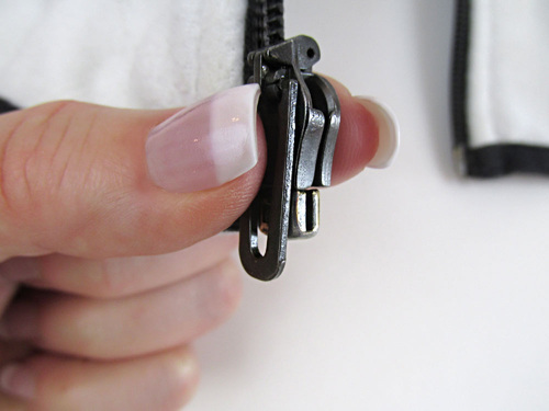 - Press the jaws of the slider firmly together to close the slider over the zipper teeth.