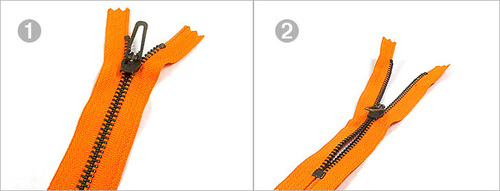 - For a non-separating zipper, 1) place the slider over the closed teeth and press the jaws of slider firmly together.