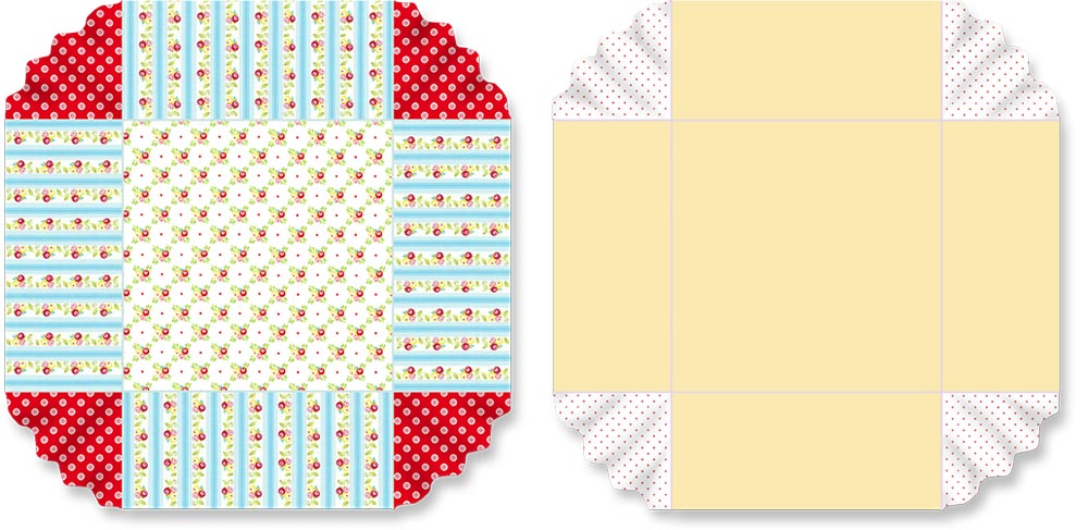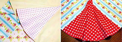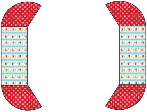 - From the fabric for the reverse flounces (the Simply Sweet Tiny Dot in our sample), use the pattern to cut four flounces.
