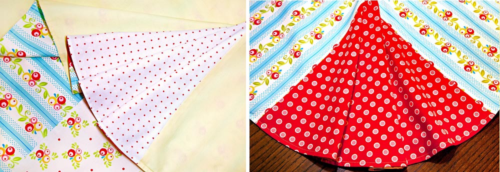 NOTE: Your finished reversible tablecloth needs no additional topstitching other than what you did around the bottom. The combined weight of the fabric and the large size of the panels allow the tablecloth to lie nice and flat on both sides.