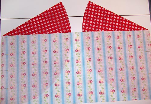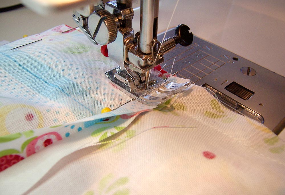 - Using a ½” seam allowance, stitch from the bottom edge into the corner, matching your seam line as you come into the corner.