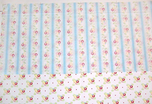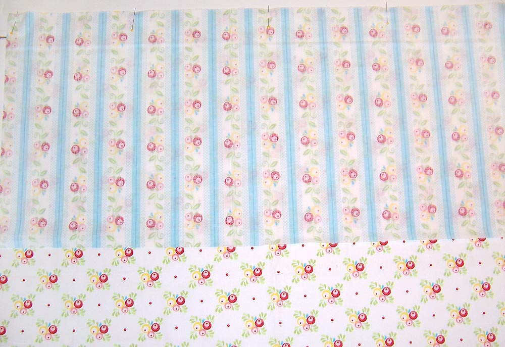 - From the fabric for the drop panels (Simply Sweet Floral Stripe in our sample), cut four 35″ x 16″ rectangles.