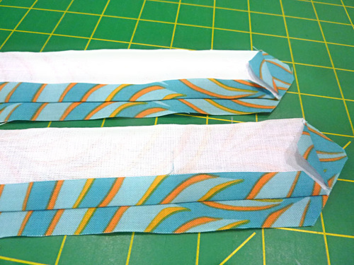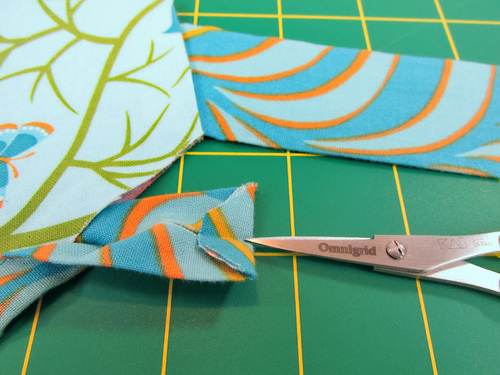 NOTE: If you struggle with turning ties right side out, take a look at our tutorial: Turning and Pressing Skinny Straps and Ties.