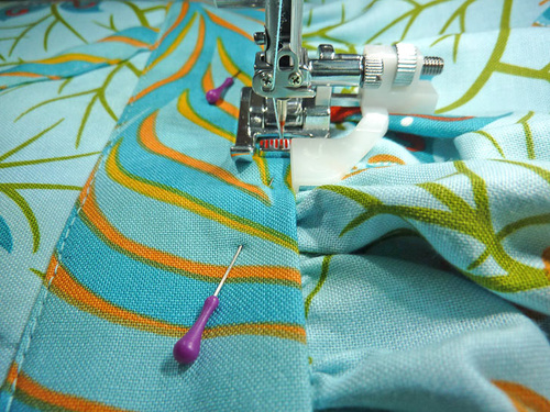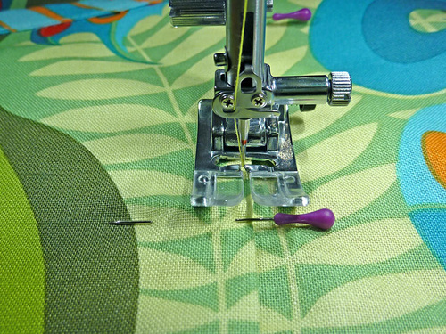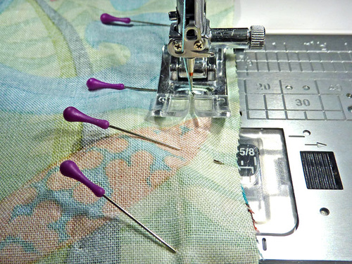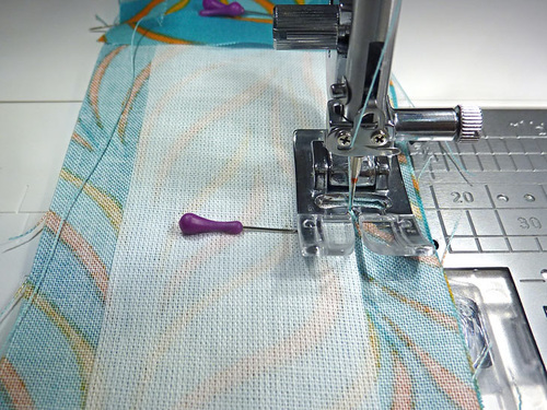 - Pin along the bottom and/or machine baste to keep the overlapped panel width secure.