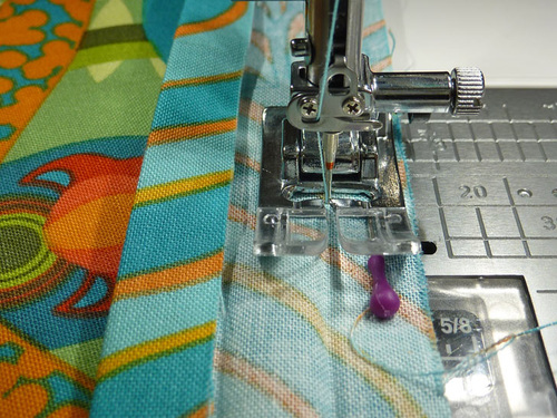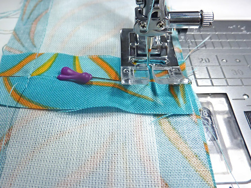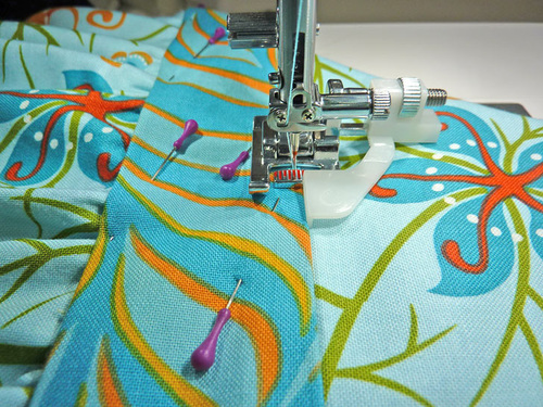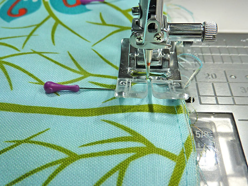 - Re-set the stitch length to normal. Using a ½” seam allowance, stitch along both sides and across the bottom, pivoting at the corners. The top remains un-sewn.