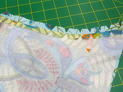 - Press flat, pressing in the raw edges along both the top and bottom openings so they are flush with the sewn seam.