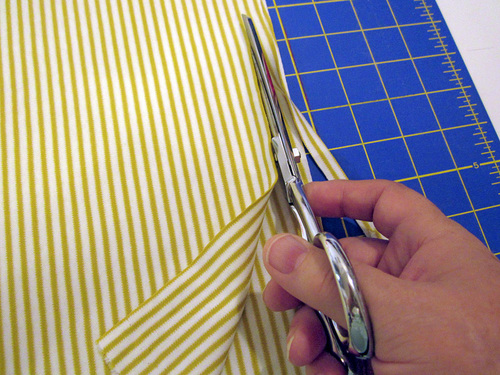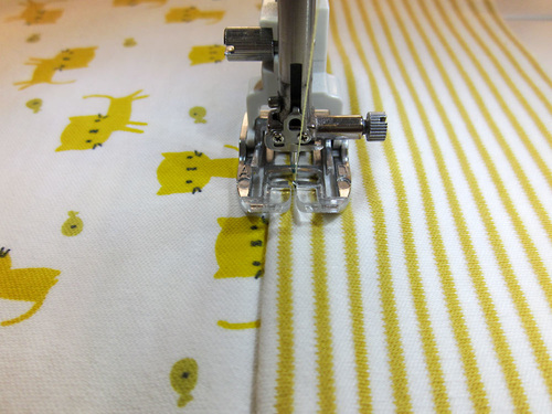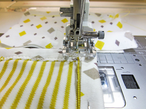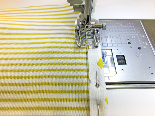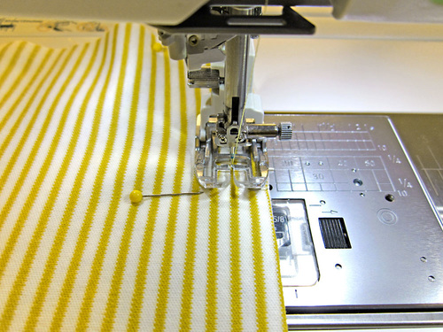 NOTE: Be aware that our chosen knit stripe was a reversible fabric – the same on both sides. Because of this, make sure you pay attention to our right side versus wrong side instructions below to make sure everything turns out correctly.