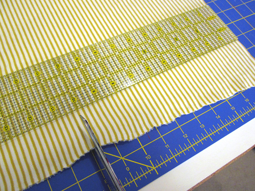 - Find one of the 11½” Stripe panels. Place it wrong side up and flat on your work surface.