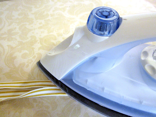 - Press well from both sides, making sure the top raw edges of the 4” panels are flush.