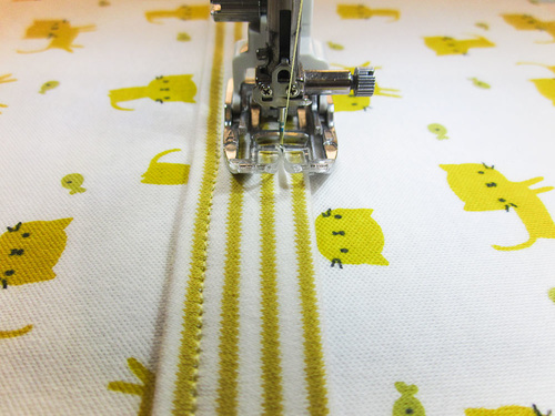 - Edgestitch along both sides of the accent strip, running these seams approximately ¼” in from the folded edge.